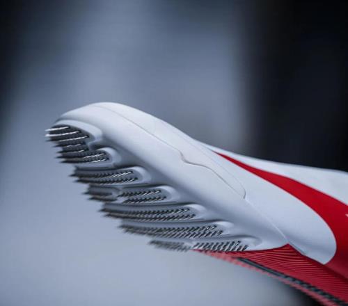 首先是起步阶段,要像子弹离膛。安踏把目光投向了最初那几步蹬冰,将特种轻量化合金锻造的鞋钉嵌入鞋底,单鞋253颗钉交错排布。“光是鞋钉的分布方案,就迭代了50多次。材料配方实验超过300种,累计测试里程超过1000公里。”安踏鞋专业装备部资深设计师雷宇表示。